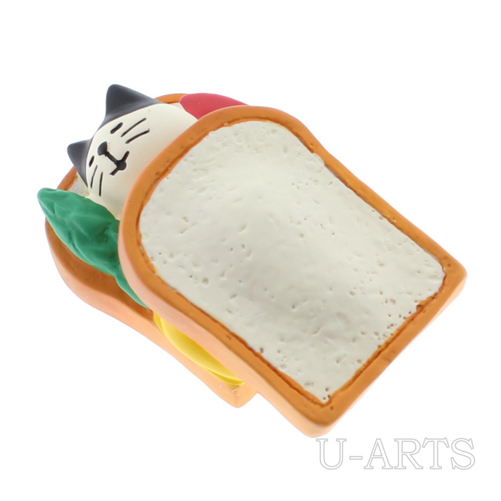 フレッシュ野菜といっしょにサンドされちゃった猫さんのマスコットです。ふっくらパンのおふとんがとても気持ちよさそう♪サイズ:約幅50×奥行き30×高さ22ポリレジン製