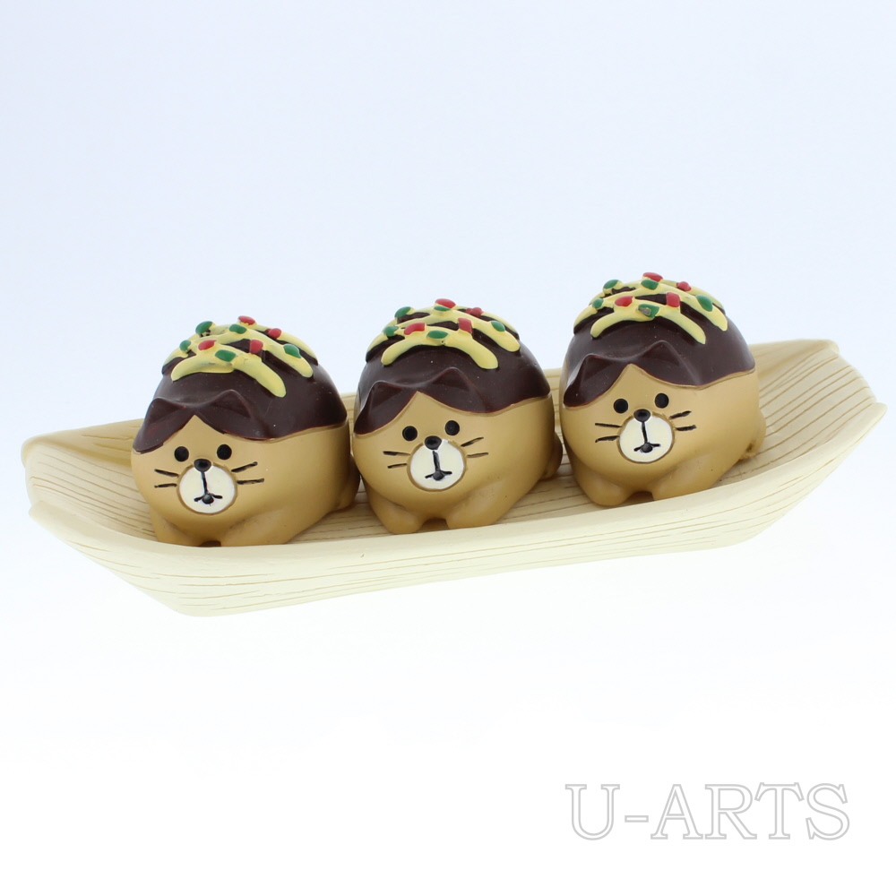 コンコンブルに大阪シリーズが登場!あつあつふっくらなたこ焼き猫さんと船皿のマスコットです。サイズ:約90×34×h25㎜ポリレジン製