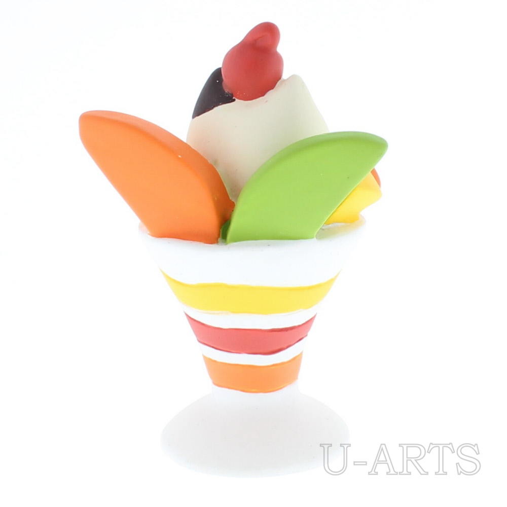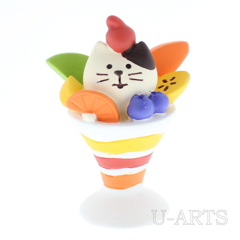 たっぷりフルーツとねこのよくばりパフェのマスコットです。サイズ:約34×25×h50㎜ポリレジン製