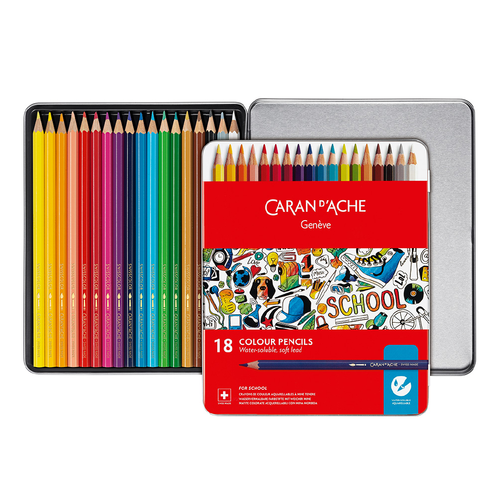 「スクールライン」はスイスの本社工場で設計・開発・製造を一貫して行っており、ヨーロッパの安全基準であるCEマークを取得しています。お子様でも安心してお使いいただけるシリーズです。色彩に富んだ創作の楽しさを感じていただけます。芯直径2.8mmの柔らかな描き味の水溶性色鉛筆。普通の色鉛筆として使う他に、水で溶かすと水彩絵具のように鮮やかな広がり、ぼかしなどの水彩テクニックが使えます。