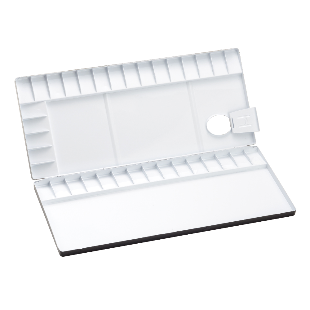 水彩やデザイン用の絵具は油絵具と比べやわらかく、しかも水でうすめて使用することが多いのでパレットは色別の仕切りや、混色皿の仕切りがついたものが便利です。アルミ製・焼付塗装サイズ:W352×D306(mm)35仕切