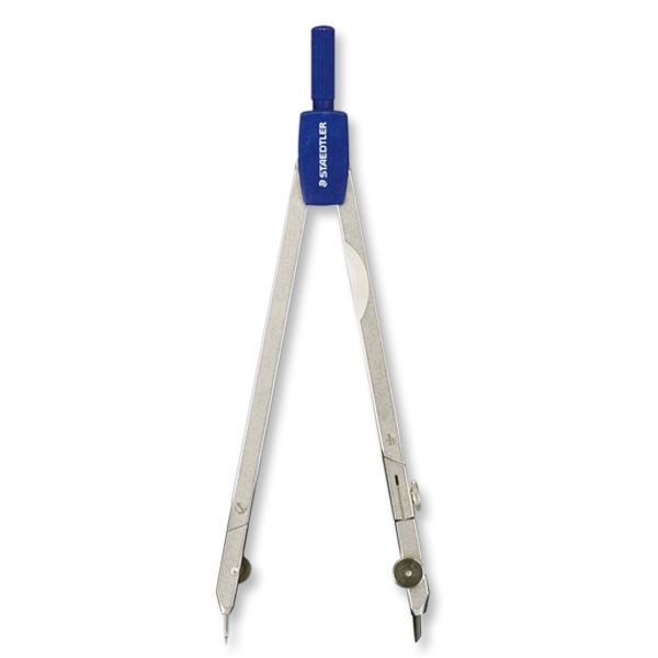 低価格ながら精巧な円が描けるギア式コンパス。両脚式。部品ケース付き。穂替差込径...φ3.5mm最小円...φ約2mm最大円...φ約380mm全長...155mm