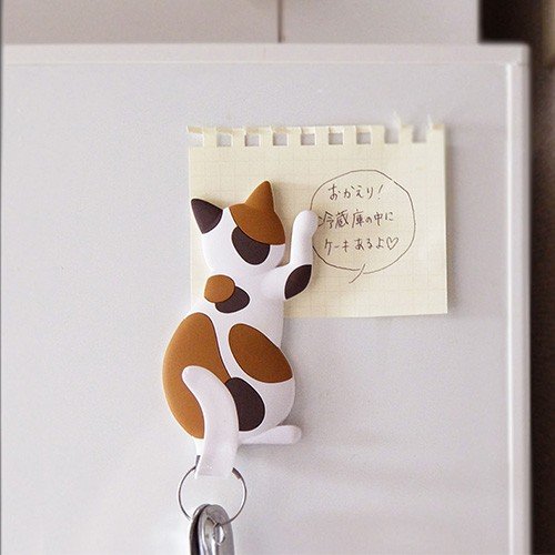 かわいいネコのマグネットフックです。鉄板入りのしっぽの部分は曲げ伸ばしOK。カギなどの小物をかけられます。裏面の磁石で玄関ドアや冷蔵庫に取り付けることができます。サイズ:約W52×H143×D5mm耐荷重:250g以下