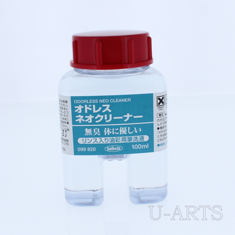 ブラシクリーナーから石油のにおいの成分を除去した筆洗液。製作中の使用も可能です。※石油臭がなくても揮発はしているので、使用時は換気をしてください。携帯に最適、容器ごと筆洗器として使えます。内容量:100ml