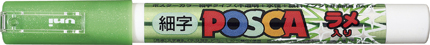 ポスターカラーのようなあざやかな発色。不透明インクなので、黒や濃色の上でも鮮やかに発色します。また、乾けば重ね書きができます。下のインク色が透けません。プラスチック・金属・ガラス・写真・鏡・木など様々な素材に書けます。耐光性に優れ、乾けば水に流れません。筆記線幅:約0.9~1.3㎜