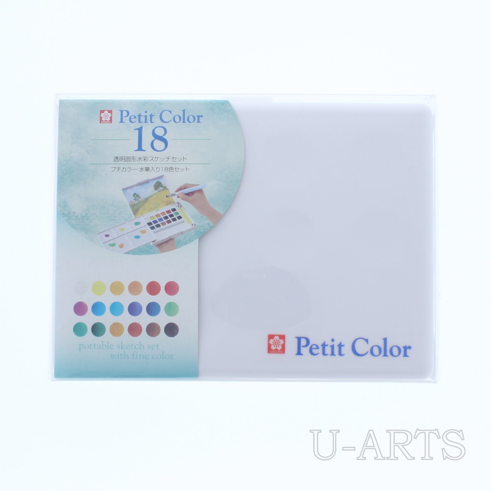 初めての方にもオススメ!コンパクトでどこでも水彩画が楽しめるプチカラーの18色セットです。※水筆×1本、パレット×1枚付き