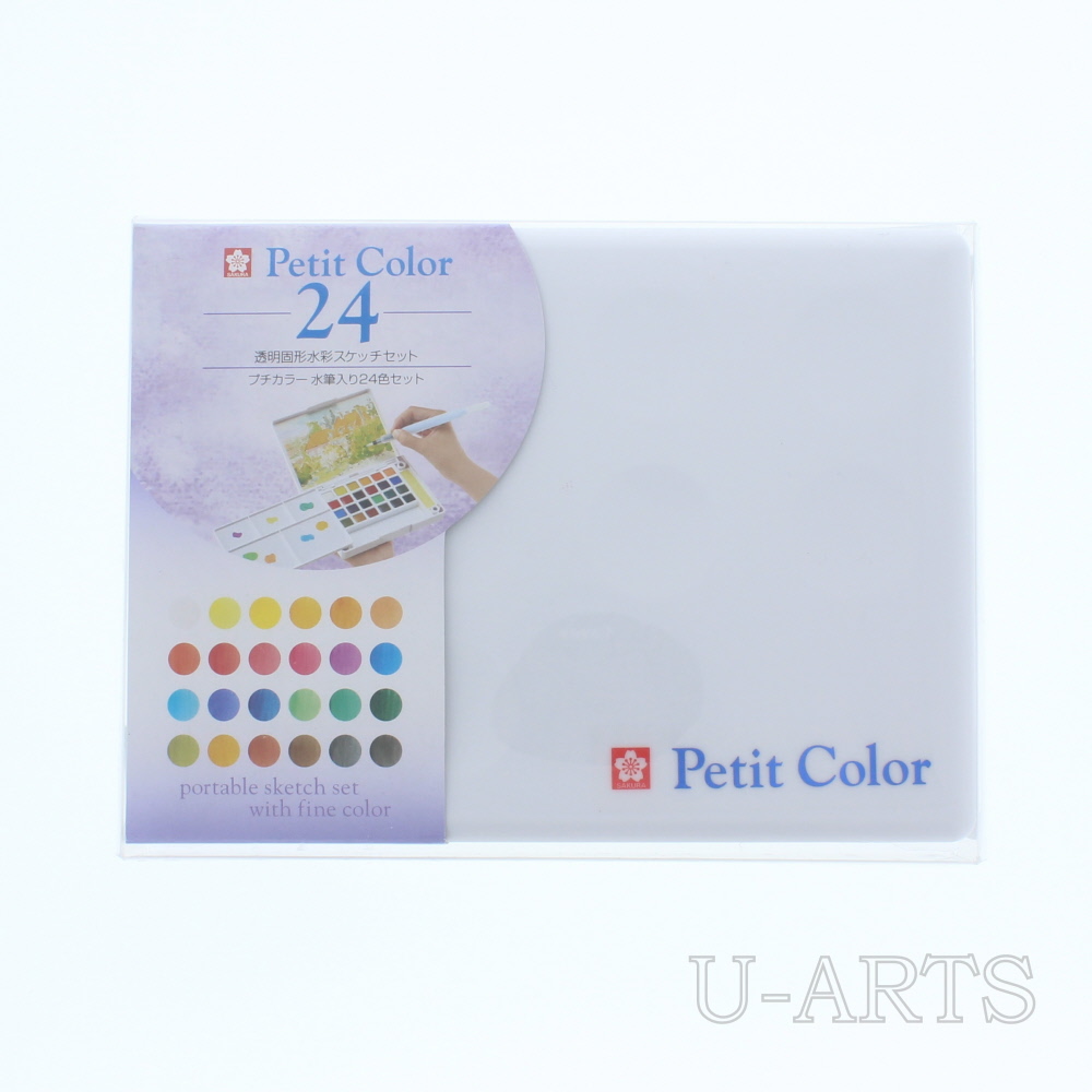 初めての方にもオススメ!コンパクトでどこでも水彩画が楽しめるプチカラーの24色セットです。※水筆×1本、パレット×1枚付き