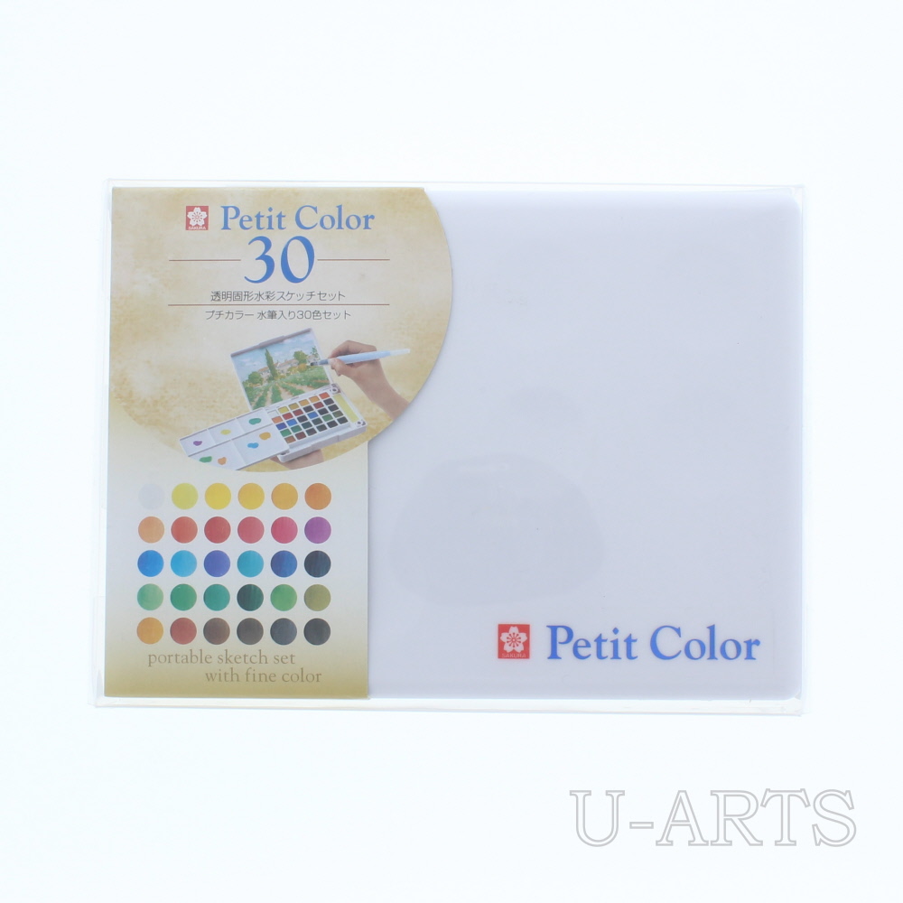 初めての方にもオススメ!コンパクトでどこでも水彩画が楽しめるプチカラーの30色セットです。※水筆×1本、パレット×1枚付き